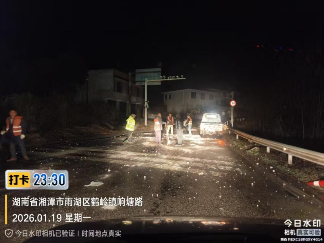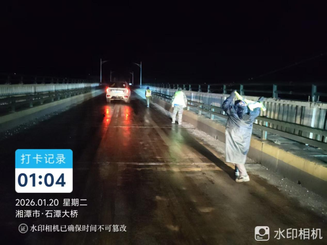 19日晚间,湘潭县公路养护中心的巡查队伍迎着夜色奔赴辖区内国省干线公路及重点农村公路。此次夜间巡查聚焦辖区内重要桥梁、急弯陡坡、临水临崖等易结冰、高风险路段,尤其是对跨江大桥等关键节点进行重点排查。在重要桥梁的桥面、引道及易结冰路段,工作人员均匀撒布融雪盐,为通行车辆筑牢安全屏障。