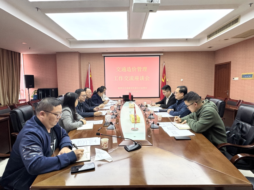 座谈会上,我站对长沙市交通质安站一行的到来表示热烈欢迎,并简要介绍了交通造价管理工作的整体情况。随后,双方围绕造价监督检查、材料信息采集调查、造价审查三大核心内容展开了深入细致的交流与探讨。
